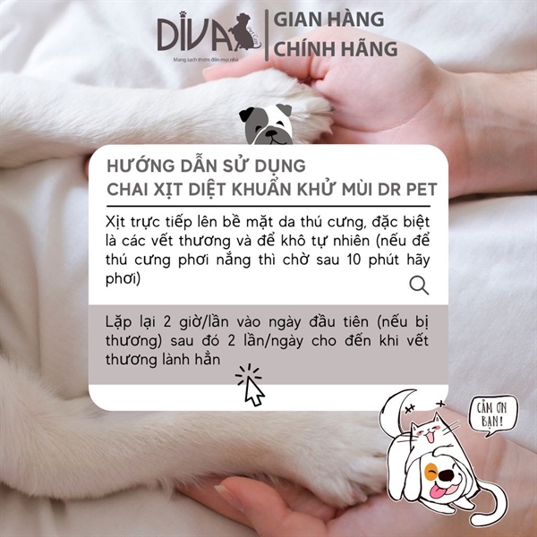 Cách sử dụng Xịt Khử khuẩn thú cưng Nano bạc DIVA Dr. Pet: